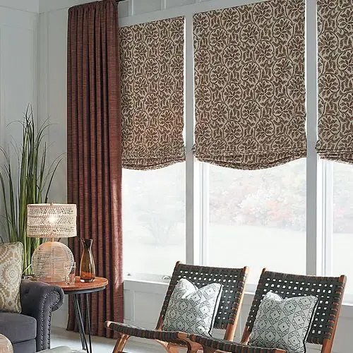 - Decorative drapery panels — where the window doesn’t need to perform, soft panels add warmth and color beautifully